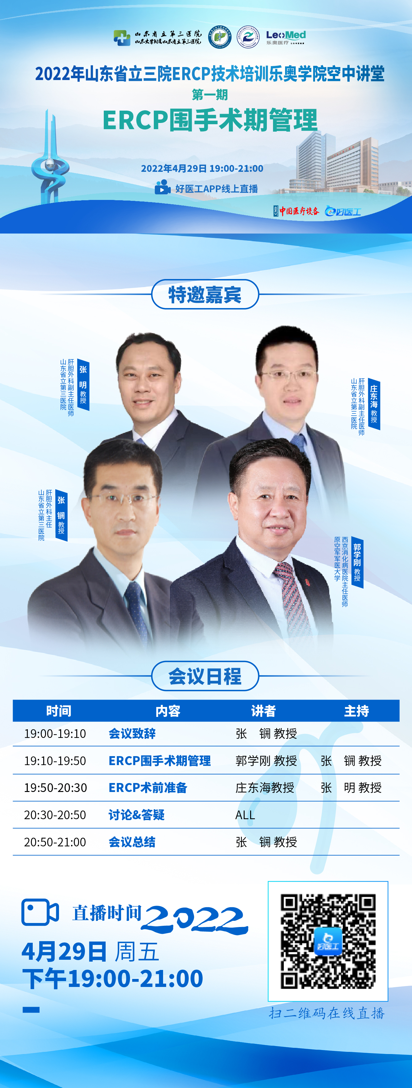 「直播預(yù)告」|【4月29日 19:00】山東省立三院ERCP技術(shù)培訓(xùn)樂(lè)奧學(xué)院空中講堂第一期:ERCP圍手術(shù)期管理