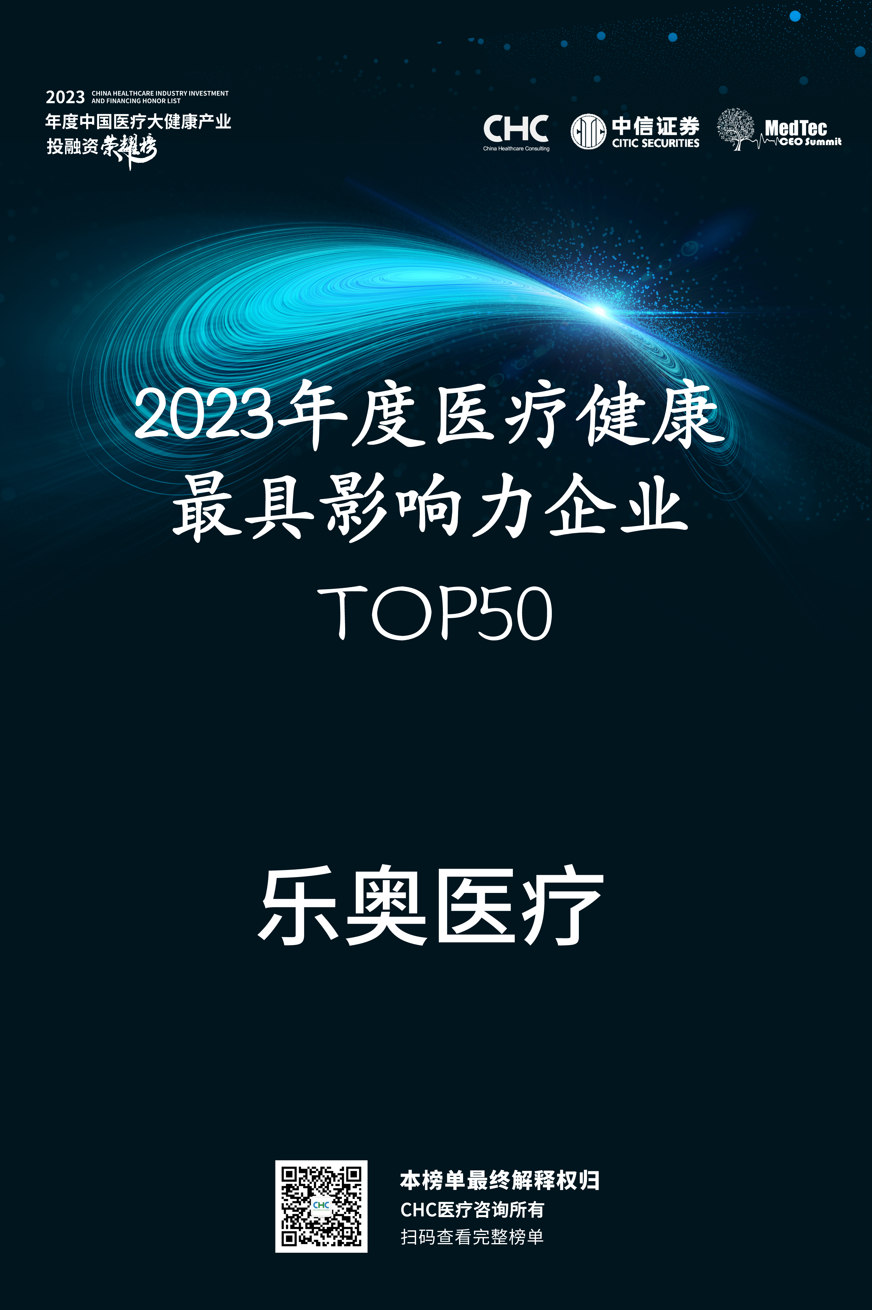 樂奧醫療榮登「2023年度醫療健康最具影響力企業 TOP50」榜單